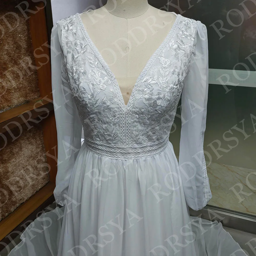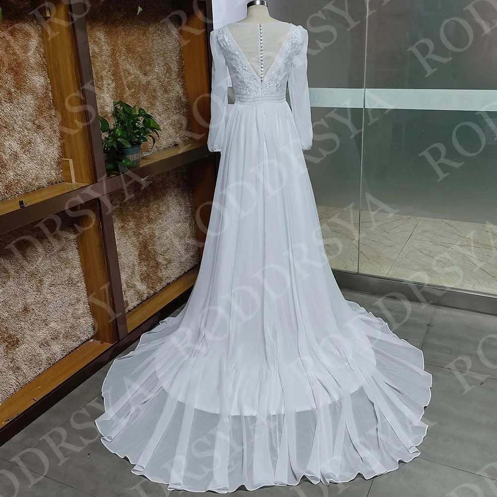 RODDRSYA Bohemian Wedding Dress Women Vestidos Novias Boda Chiffon Long Sleeves Lace Bride Dresses